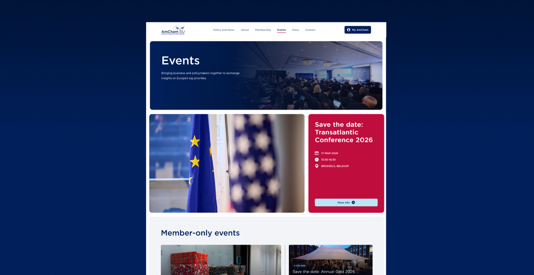 AmCham EU represents American companies invested in Europe and advocates for their interests at the EU level. They provide a platform for networking, policy discussion, and sharing best practices